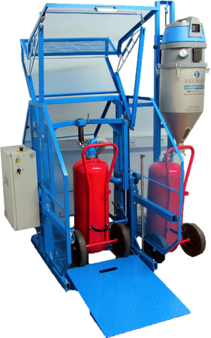 Nie mehr Schwerstarbeit: Mit „Set IV“ für fahrbare Löschgeräte wird selbst das Leeren und Befüllen von Großgeräten zum Kinderspiel.
